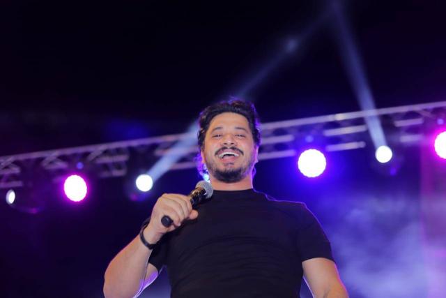 وظهر حجاج وهو يغنى أغنية خطوة التى أشعلت أجواء الحفلة فى حضور الآلاف.