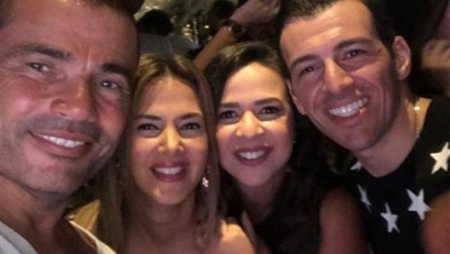 إيمي سمير غانم برفقة زوجها وشقيقتها فى عيد ميلاد عمرو دياب