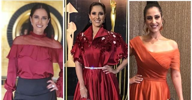 وتألقت حنان مطاوع خلال ها الحفل بإطلالة محتشمة وأنيقة جمعت بين اللونين الأحمر والنبيتي .