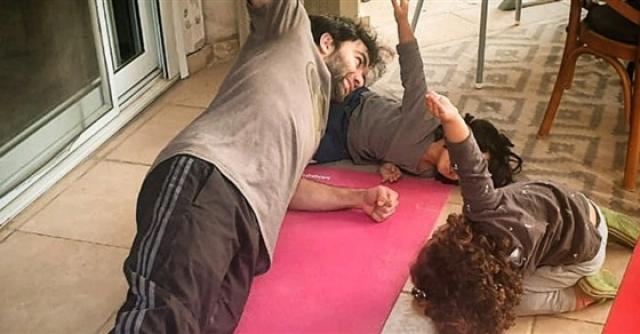 برفقة أولاده.. شريف رمزى يؤدي التمارين الرياضية داخل المنزل