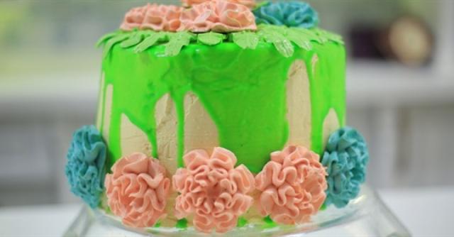 * يزين وجه الكيكة بالوردات وتقدم