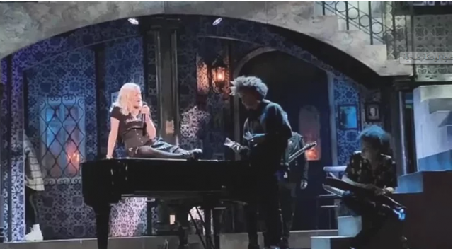 واصطحبت نجمة البوب التي تبلغ من العمر 61 عاما، على المسرح طفلتيها بالتبني، التوأم وحبيبها الراقص، مالك ويليمز، الذي يصغرها في العمر بـ 35 عامًا.
