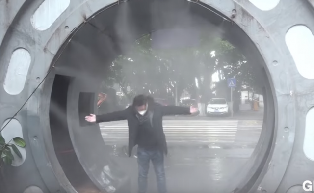 وذكر تقرير نشرته وكالة الأنباء الصينية ”تشاينا نيوز سيرفس“ أن النفق مجهز بكاشفات بالأشعة تحت الحمراء للأرصاد، حيث تقوم بتنشيط رذاذ بمجرد دخول الشخص المستهدف عبره.