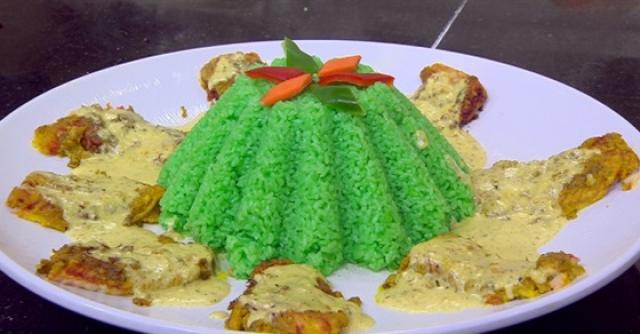 * يقدم السمك مع الصلصة والأرز حسب الرغبة