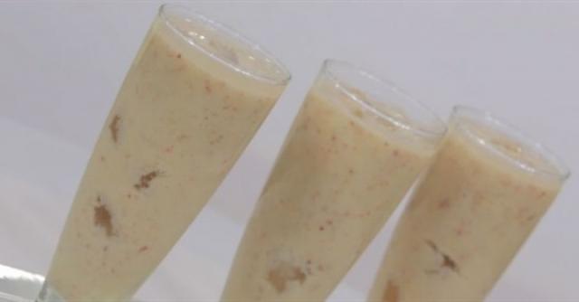 -ضعى كل المكونات فى الخلاط واخفقيهم جيدا ويقدم مع الثلج.