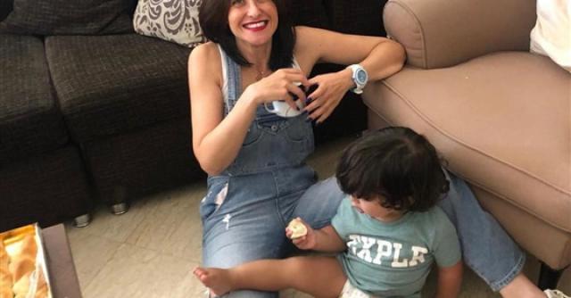 آخر العنقود.. هيدي كرم تتألق بصحبة ابنها الأصغر