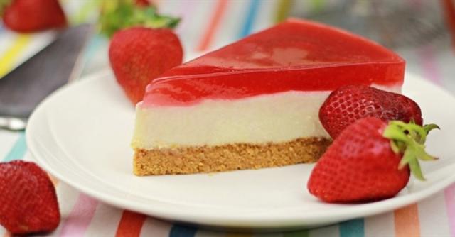 مقادير تشيز كيك الجيلي:كريز بسكوت سادة بودرة كريم شانتي 2 باكو جيلي بالفراولة 4 كوب ماء كريمة مخفوقة كريمة لباني جبنة كريمةزبدةلبن مكثف