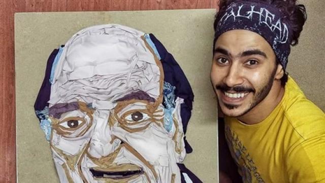 «لو كان حيا لأهديته إياها».. شاب يرسم الفنان حسن حسني بـ«الملابس»