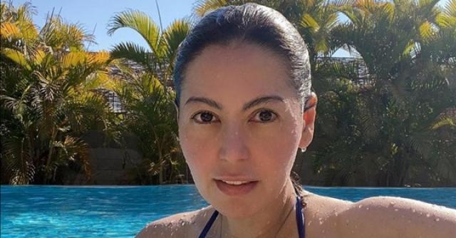 من داخل حمامة السباحة.. لقاء الخميسي تقضى عطلتها الصيفية