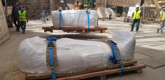 وصول قطع أثرية ضخمة إلى المتحف المصري الكبير لعرضها بالدرج العظيم: