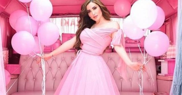 وظهرت نسرين طافش في الصورة بفستان بينك ، وشعرها الأشقر المنسدل على الأكتاف .