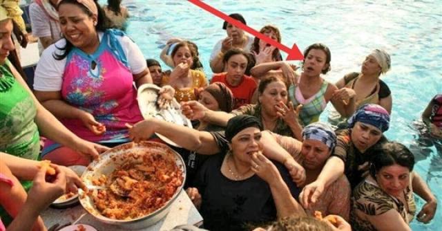 الصورة جاءت كسخرية على الإتهامات المتبادلة بين أنصار حرية استخدام حمامات السباحة بـ المايوه الشرعي وبين رافضينه.