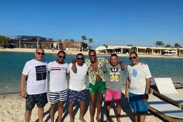 وظهر «السقا» خلال عدة صور تجمعه بالشيف علاء الشربيني، وعضو مجلس النواب جون طلعت وعدد من أصدقائهم، على البحر وبملابس صيفية تحت أشعة الشمس .