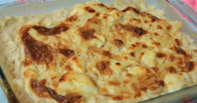 -يشوح البصل والزبيب في السمنة-يرفع اللبن مع المرقة على النار مع ملح وفلفل- ويضاف لها الكريمة وتترك حتى الغليان- يخلط الأرز مع البصل والزبيب-ويوضع الأرز في البايركس-ويضاف له المرقة باللبن والكريمة- وتوضع القشطة على الوجه-ويدخل البايركس الفرن حتى تمام الطهي-ويقدم ساخنا