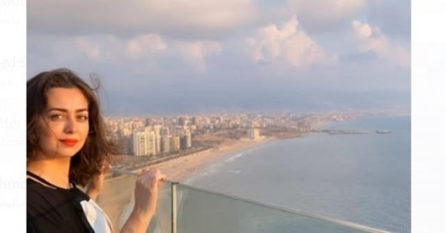 وظهرت هبة مجدى فى الصورة من أحد الأبنية بلبنان .