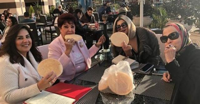 وظهرت رجاء الجدواي في الصورة برفقة بوسي شلبي وعدد من اصدقائهم خارج الوسط الفني .