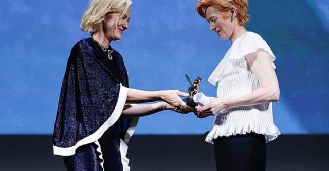 تيلدا سوينتون تغادر فينيسيا بعد منحها الأسد الذهبى من المهرجان الإيطالي