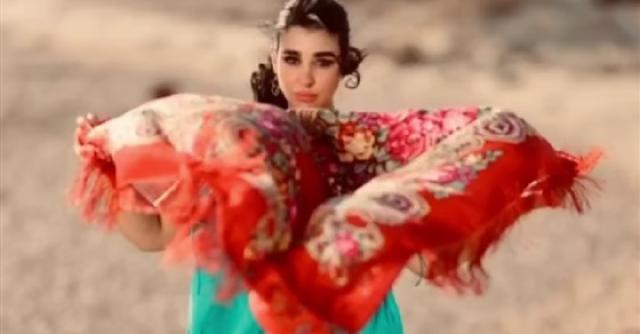 و ظهرت جيهان في الصورة في الصحراء بإطلاة ساحرة ارتدت فستان باللون الفيروزي مع شال باللون الأحمر مما جعل إطلالتها مميزه.