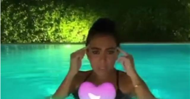 وظهرت ميريهان حسين، في مقطع الفيديو وهي ترقص على نغمات حالة خاصة جدا للفنان أنغام داخل حمام السباحة برفقة كلبها.