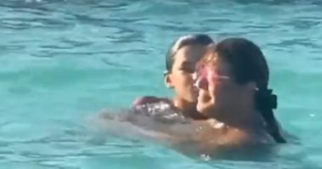 هالة صدقى تستمتع مع ابنها فى البحر على نغم "يا ملاكى تروح حياتى فداكى".. فيديو