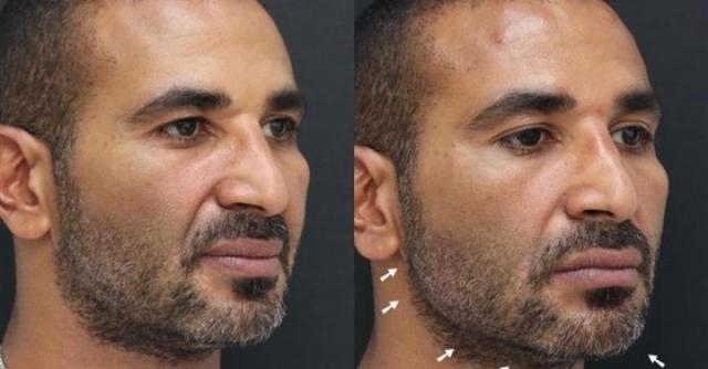 فترى في الصورتين السابقتين التجاعيد الملحوظة حول عين راغب علامة، التي اختفت تمامًا في الصورة الثانية.