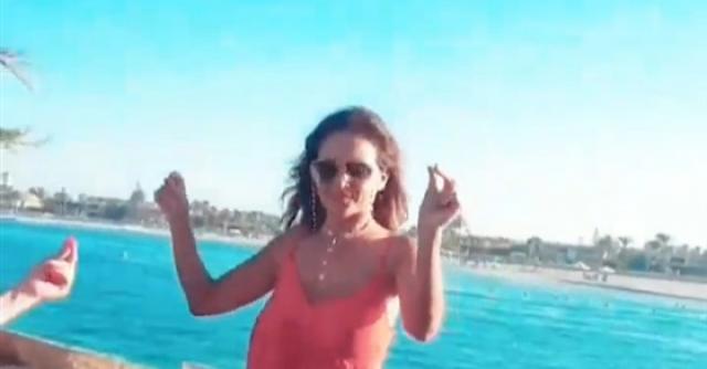 على حمام السباحة.. نيللى كريم ترقص على أغنية مليونير.. فيديو