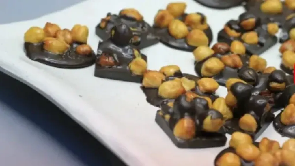 - التشكيل: أحضري قالب سيليكون (على شكل مربعات أو كرات)، صبي كمية بسيطة من الشوكولاتة الداكنة المذابة في القاع، ثم وزعي حبات الحمص المقرمشة فوقها.